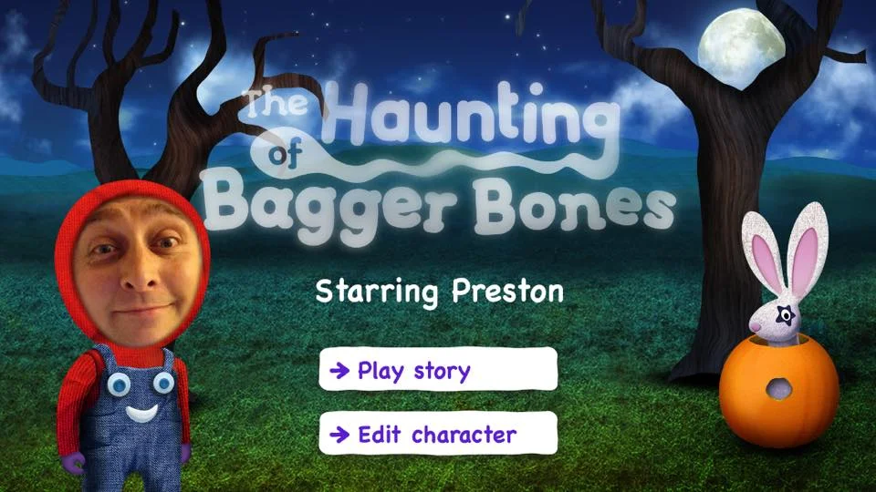 The Haunting Of Bagger Bones is a frighteningly clever story app for kids. A revolution in digital storytelling, it puts your child at the heart of the action and turns them into a star instantly. First, by seamlessly integrating their face into the illustrations; then by adding a personalised narration by Ray Brooks - the iconic voice of Mr Benn.